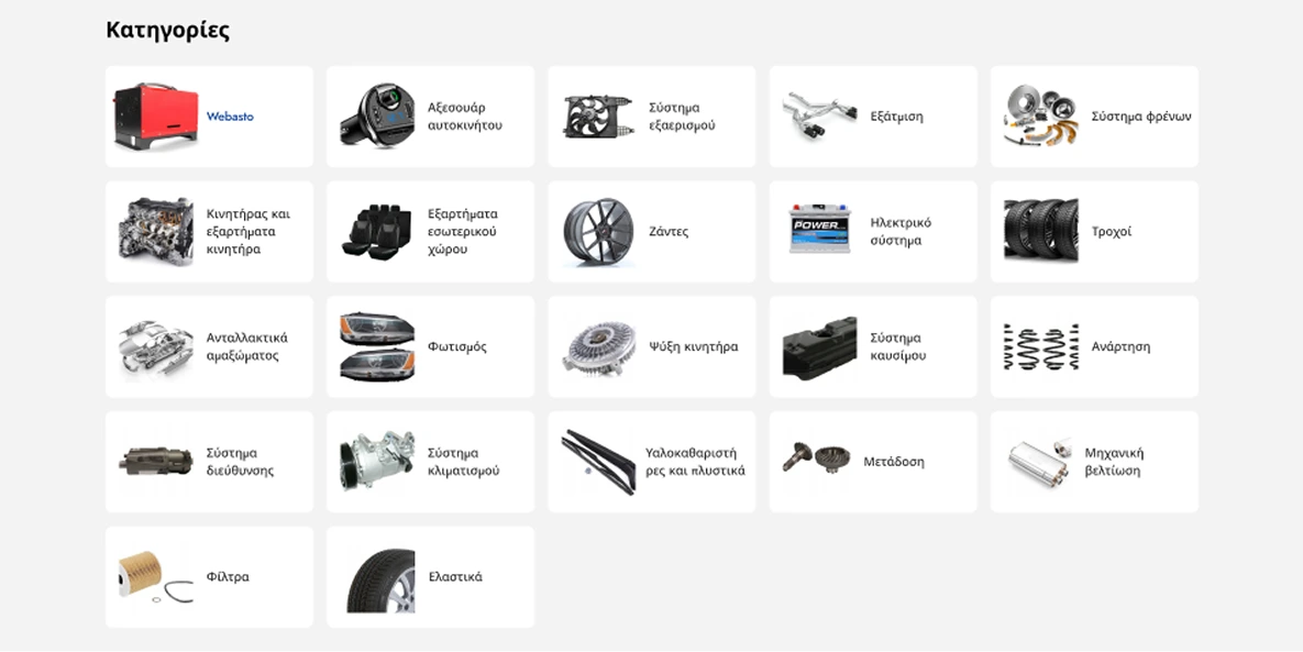 - Χρησιμοποιώντας τον κατάλογο κατά κατηγορίες (κινητήρας, ανάρτηση, αμάξωμα κ.λπ.)