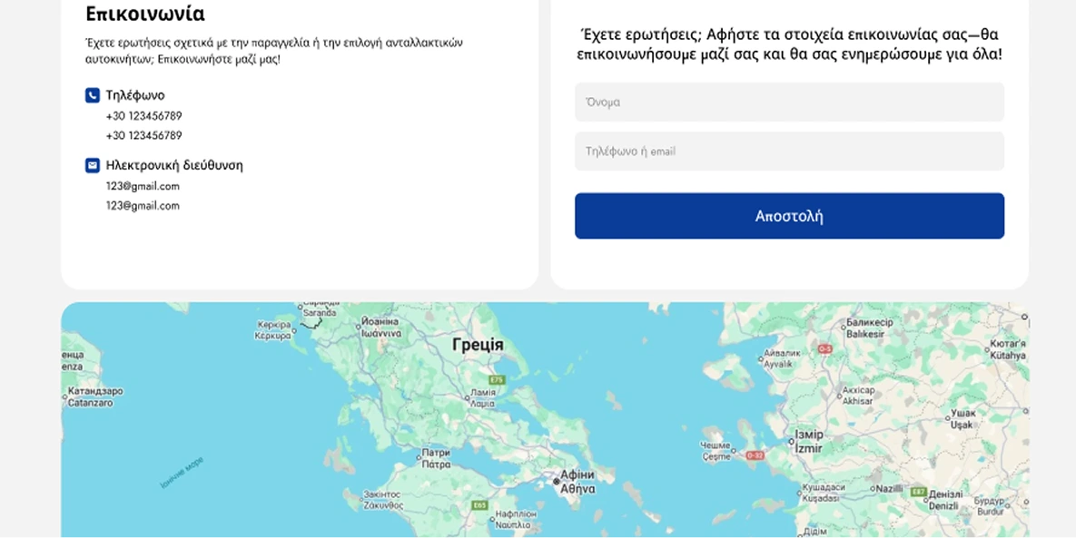 - Όνομα και αριθμό τηλεφώνου επικοινωνίας